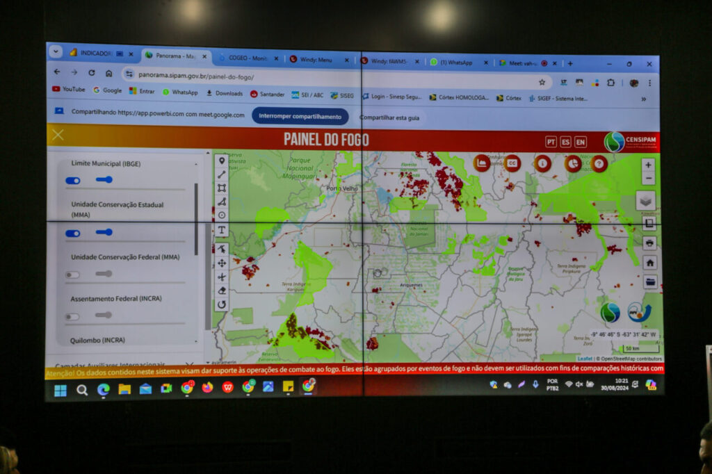 Agentes de segurança do estado de Rondônia, membros da Secretaria de Estado do Desenvolvimento Ambiental (Sedam), do Instituto Brasileiro do Meio Ambiente e dos Recursos Naturais Renováveis (Ibama), Ministério Público do Estado de Rondônia (MPRO), Polícia Federal (PF) e Exército Brasileiro já estão em campo, no trabalho de combate às queimadas no Parque Estadual Guajará-Mirim, região que está sendo afetada por fogo aplicado de forma criminosa.