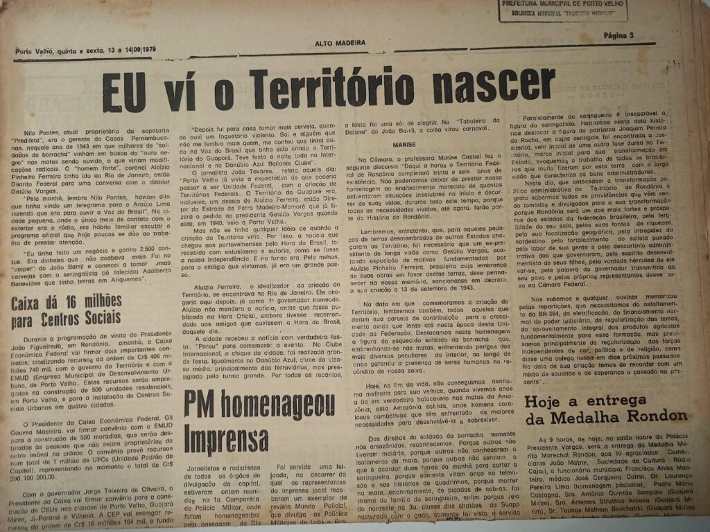 Dois testemunhos no jornal Alto Madeira (Pág 3, dia 13.9.79):
