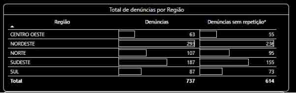 Total de denúncias por região