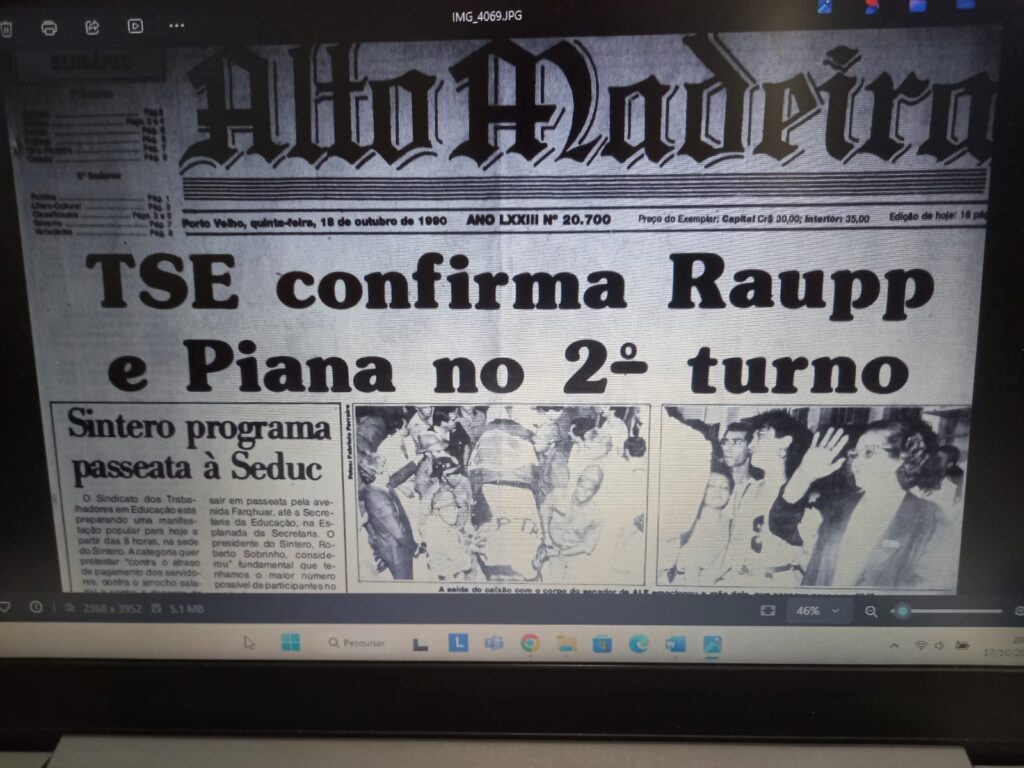 Lembro que na edição do dia 17, cerca de 14 horas após a morte de Olavo, o “Alto Madeira”, onde eu trabalhava, trouxe em destaque a declaração dada, na madrugada, por um membro do Tribunal Eleitoral, de que o candidato Osvaldo Piana iria ao returno.