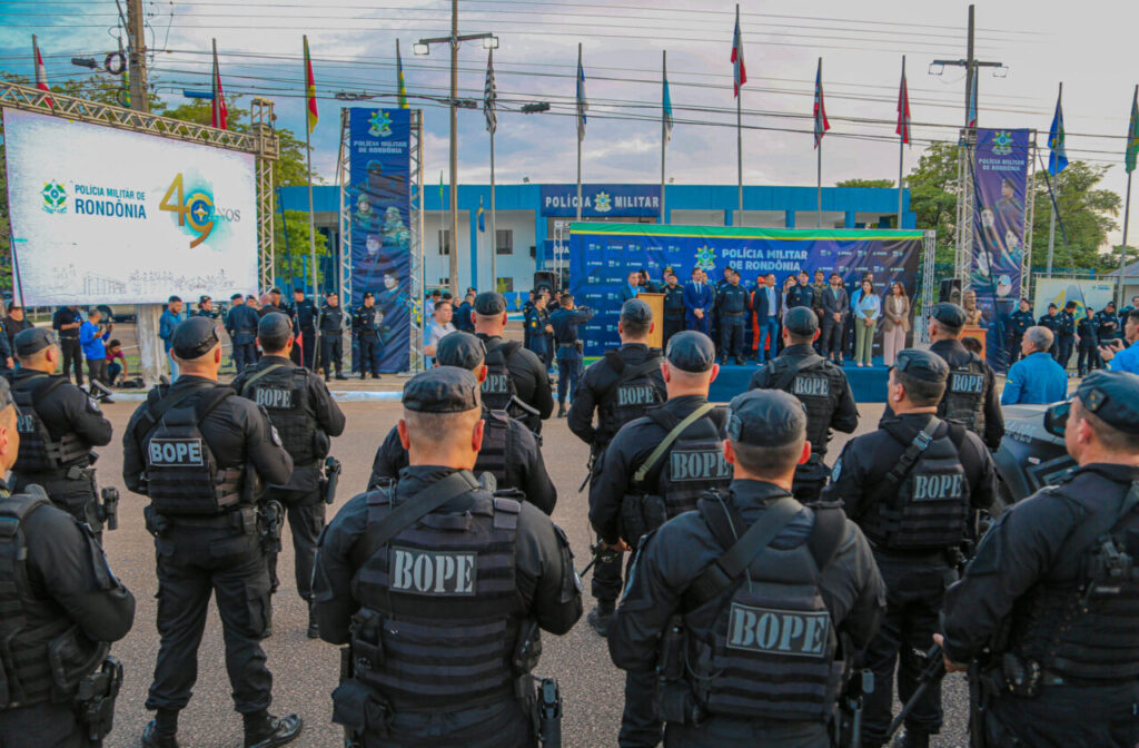 Uma cerimônia com apresentações, homenagens e anúncio de investimentos marcou o aniversário de 49 anos da Polícia Militar do Estado de Rondônia (PMRO) na segunda-feira (25), na sede do Comando-Geral da Corporação, em Porto Velho. Autoridades, oficiais, praças e a população celebraram a história da entidade em uma programação especial, que trouxe outorgas de medalhas, desfile militar e entrega de equipamentos.