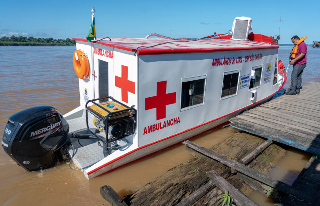 O transporte fluvial também foi fortalecido com a entrega de ambulanchas, que operam nos distritos de São Carlos e Calama, atendendo cerca de 12 comunidades ribeirinhas ao longo do baixo Madeira. As embarcações, equipadas com rede de oxigênio, espaço para macas e iluminação noturna, oferecem condições seguras para emergências médicas.
