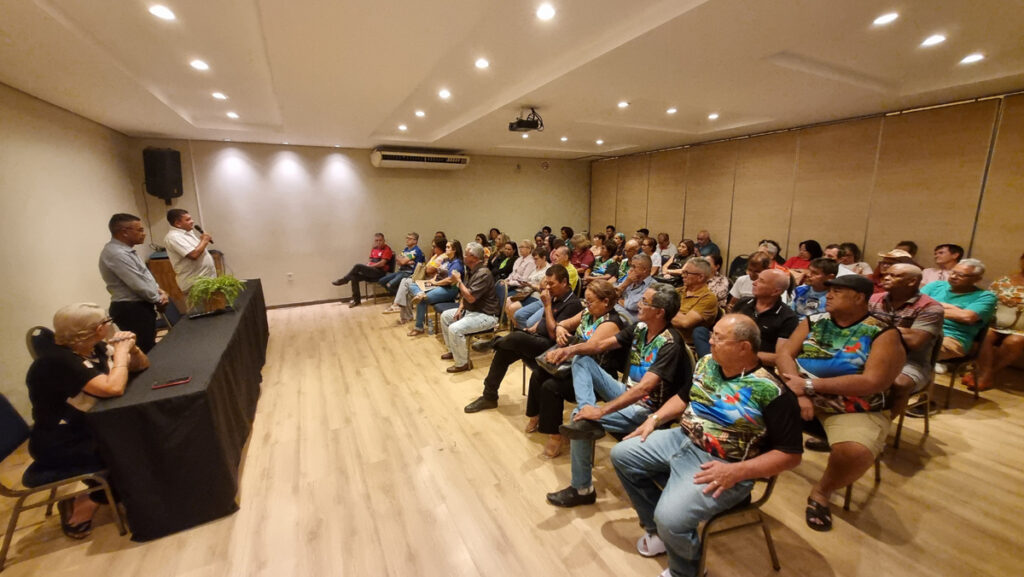 A reunião do Sistema Diretivo reúne integrantes da Diretoria Executiva, dirigentes das Coordenações Regionais, Conselho Fiscal e Comissão de Ética para informes diversos. O advogado Denyvaldo Júnior (Escritório Fonseca & Assis) também está presente para atualizações das demandas jurídicas.