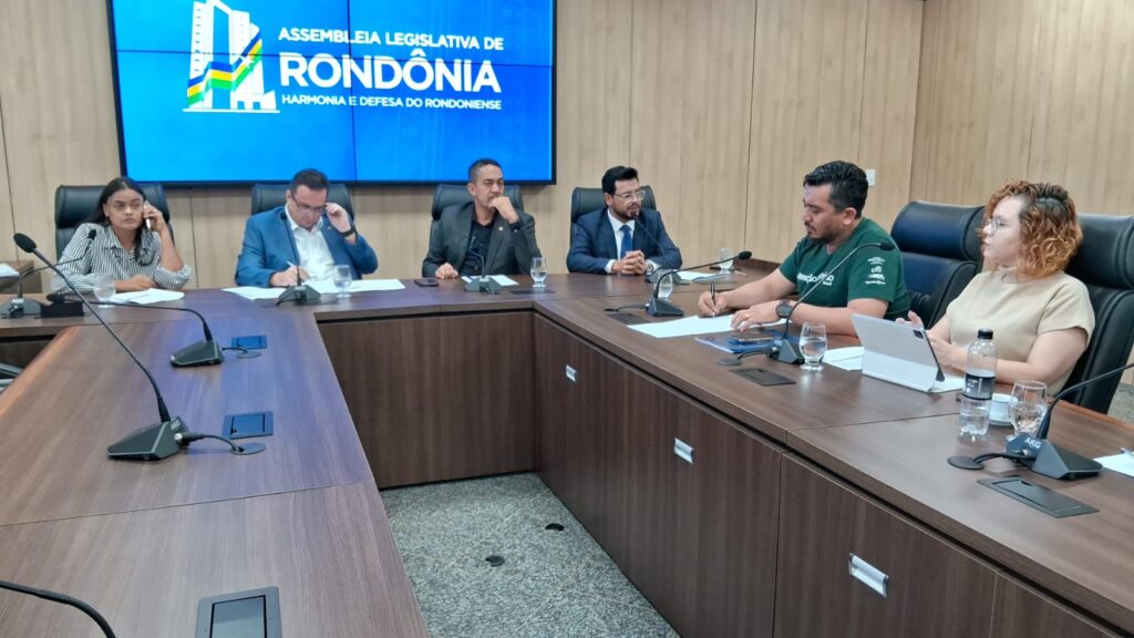 A Comissão de Saúde, Previdência e Assistência Social da Assembleia Legislativa de Rondônia (Alero) recebeu, nesta terça-feira (11), o secretário de Estado da Saúde, Jefferson Rocha, e a equipe técnica da pasta para prestar esclarecimentos sobre demandas apresentadas pelos parlamentares. Durante a reunião, foram discutidos temas como a reestruturação da rede hospitalar, a situação da hemodiálise em Guajará-Mirim e a compra de uma nova unidade de saúde.