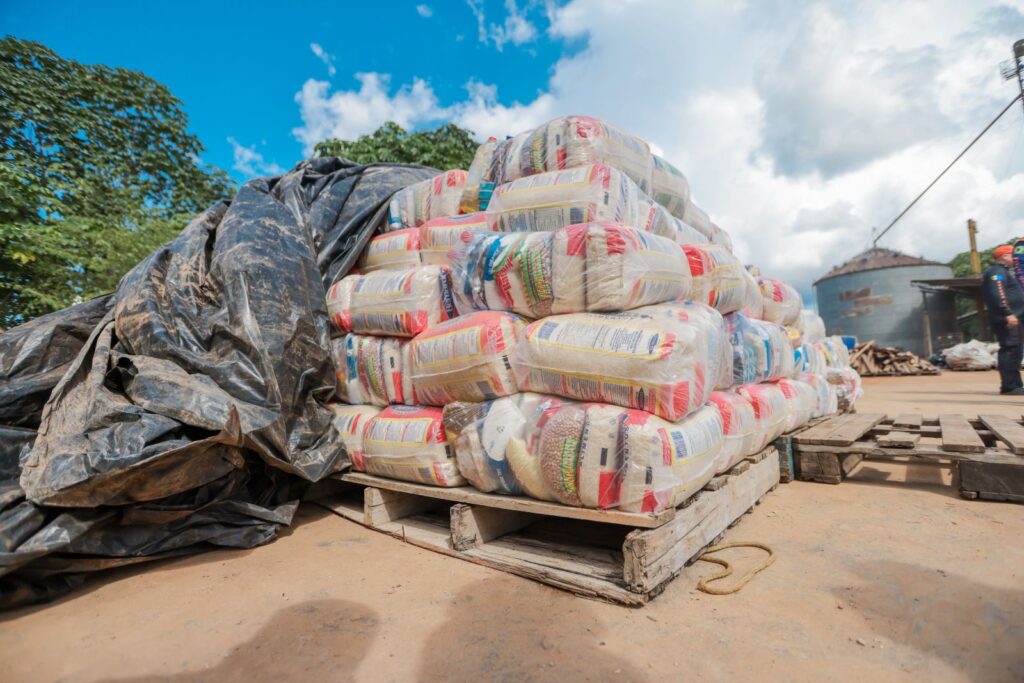 Foram embarcadas na sexta-feira (21) mais 600 cestas básicas que serão doadas para famílias que moram no distrito de Nazaré, no baixo Madeira e regiões circunvizinhas. A Prefeitura também segue distribuindo água mineral e hipoclorito. Em seguida, outras comunidades serão atendidas.