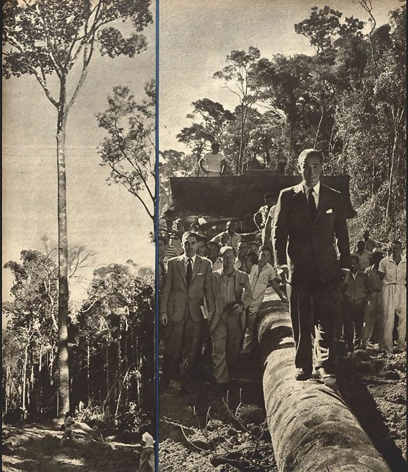 Outro susto foi quando ele Juscelino desfilou sobre o tronco da árvore (as mesmas histórias foram-me contadas por Esron Menezes, representante do governo do Território junto às construtoras da BR.