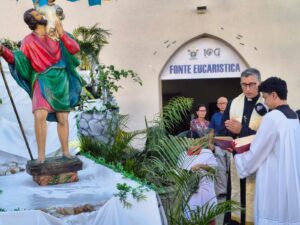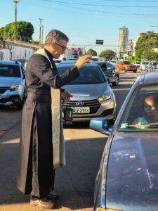 Desde a manhã e até 16 horas desta sexta-feira acontece a grande bênção dos veículos na frente da igreja pela rua Guanabara