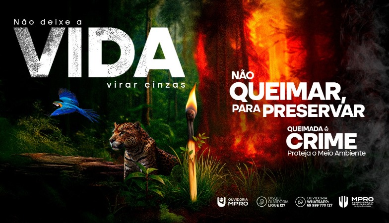 O meio ambiente equilibrado é um direito garantido a todos. Cabe ao Ministério Público de Rondônia fiscalizar e atuar para que esse direito seja respeitado. Com a campanha, o MPRO reforça seu papel na proteção da natureza e da saúde pública e conta com a colaboração de toda a sociedade para prevenir novas queimadas. Denúncias podem ser feitas pelos canais oficiais da instituição.