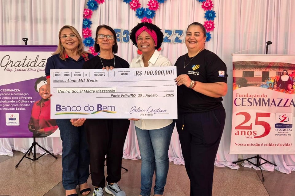 O trabalho com crianças e adolescentes do Centro Social Madre Mazzarello, no bairro Socialista, zona Leste de Porto Velho, está assegurado, graças à emenda de R$ 100 mil destinada pela deputada federal Sílvia Cristina. A entrega simbólica do cheque foi durante solenidade na tarde desta segunda-feira, mas o recurso já está na conta da instituição.