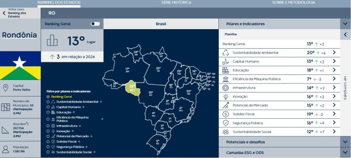 Rondônia alcançou a 13ª colocação no cenário nacional, subindo várias posições