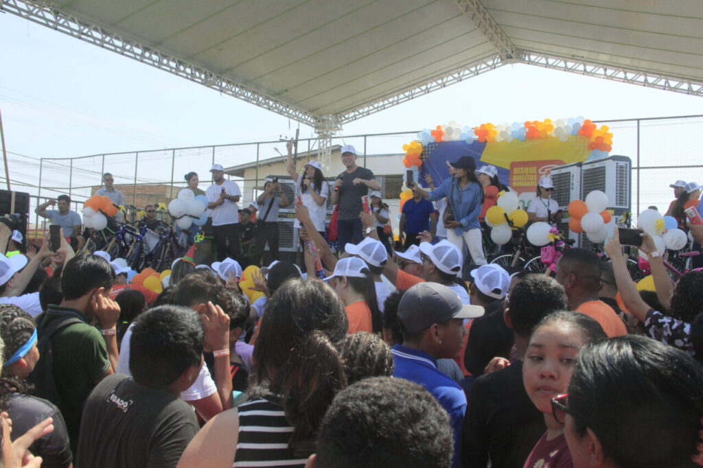 Vitor, de 11 anos, foi o primeiro a ganhar a bicicleta, em uma mistura de surpresa e alegria. “Eu não imaginava que iria ganhar esse presente do Dia das Crianças, estava querendo uma bola, mas foi muito melhor. Estou muito feliz.”
