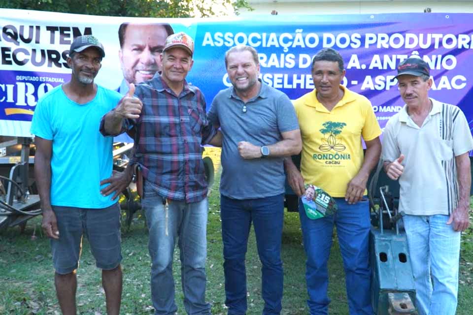 O trabalho realizado pelo deputado estadual Cirone Deiró está contribuindo com o fortalecimento da agricultura familiar, em Rondônia. O parlamentar tem destinado recursos para a aquisição de maquinário e implementos agrícolas, permitindo o plantio e a colheita no tempo certo. “Esses equipamentos chegaram em boa hora e vão ajudar muito na silagem para o gado e no preparo da terra para a plantação”, disse o agricultor Edmar Moreira Lopes, presidente da Associação Antônio Conselheiro, do município de Theobroma.