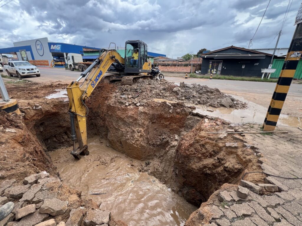 Nesta etapa, já foram instaladas 10 manilhas novas, com um metro de diâmetro cada, reforçando a capacidade de drenagem no local. Os trabalhos seguem em andamento e, conforme avaliação técnica, poderá haver a necessidade de implantação de novas manilhas para garantir maior eficiência ao sistema.