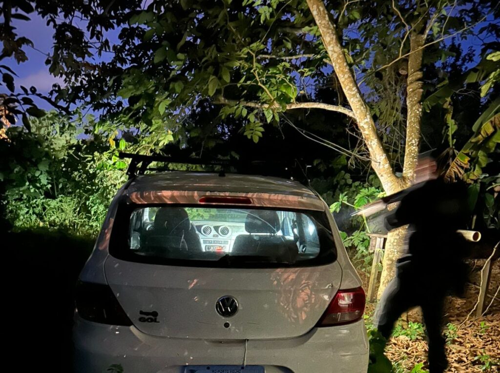 De acordo com a ocorrência, criminosos invadiram uma residência e, sob grave ameaça com armas de fogo, roubaram um veículo VW Gol branco, celulares e um cordão das vítimas. Após o crime, os suspeitos fugiram em um carro GM Classic prata, que acabou capotando na Estrada 13 de Setembro. Em seguida, o grupo abandonou o local e fugiu a pé, escondendo o veículo roubado.