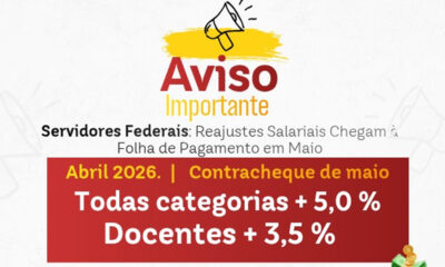 O funcionalismo público federal da educação inicia o mês com novidades no contracheque. Conforme previsto no cronograma de acordos plurianuais, a folha de pagamento de maio...