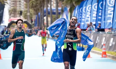 Brasileiro estava em 3º quando arrançou para a vitória no minuto final O triatlo brasileiro subiu ao topo do pódio da etapa da Copa do Mundo...