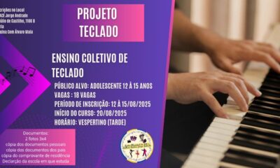 Piano, bateria, sax e trompete estão entre os cursos ofertados O Centro Municipal de Arte e Cultura Escolar Som na Leste está oferecendo vagas para diversos...