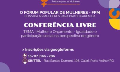 Temática: Mulher e Orçamento – Igualdade e Participação Social na Perspectiva de Gênero Inscrição para Conferência Livre preparatória para a 5ª CNPM: https://forms.gle/A7rz6mHNKyJ9sYZE6