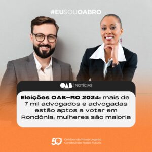 A Ordem dos Advogados do Brasil – Seccional Rondônia (OAB-RO) informa que, para as eleições de 2024, estão aptos a votar 7.466 advogados e advogados inscritos...